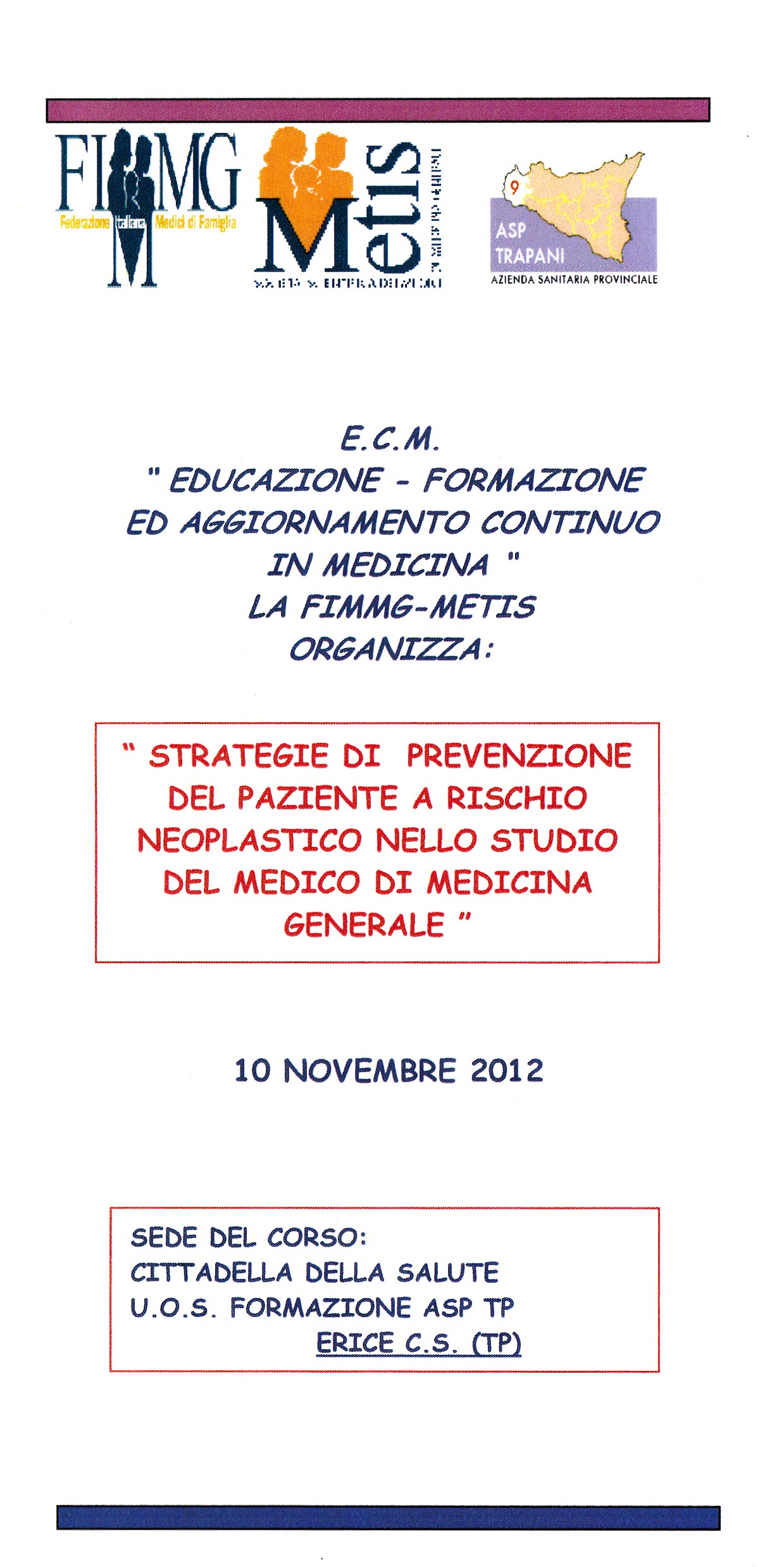 Strategie di prevenzione del paziente a rischio neoplastico nello studio del Medico di Medicina Generale - ASPTrapani.it - portale dei servizi on-line ASP 9 di Trapani