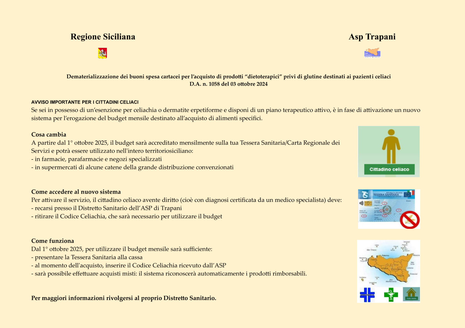 A partire dal 1° ottobre 2025, il budget sarà accreditato mensilmente sulla Tessera Sanitaria/Carta Regionale dei Servizi e potrà essere utilizzato nell'intero territorio siciliano: